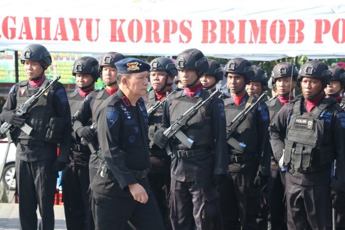RAKYATDAERAH – Wakapolda Bengkulu, Brigjen Pol Drs Sahimin Zainudin memimpin upacara peringatan hari ulang tahun (HUT) Korps Brimob ke-74 di markas komando (Mako) Brimob Polda Bengkulu yang berada di kelurahan Surabaya Kota Bengkulu.