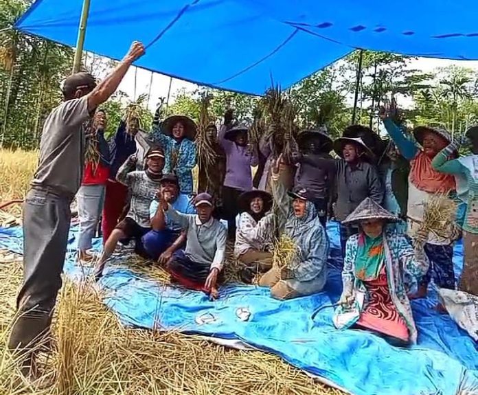 “Hari ini, warga kita ada yang perdana melakukan panen raya dengan satu hamparan,” kata Kades kepada wartawan, Sabtu (12/10).