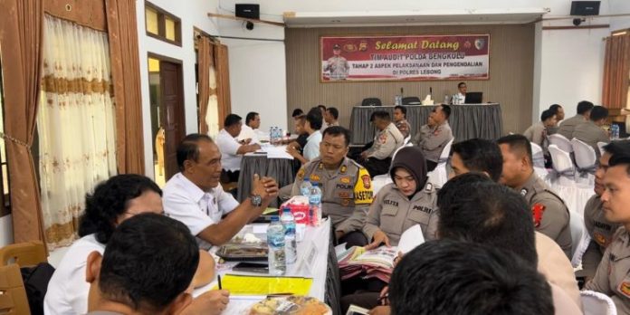RAKYAT DAERAH – Polres Lebong, pada Jumat (11/10) menerima tim Audit Kerja Tahap II Itwasda Polda Bengkulu. Kegiatan Tim Audit Kerja Tahap II Itwasda Polda Bengkulu T.A 2024 Aspek Pelaksanaan dan Pengendalian di Polres Lebong yang digelar di bertempat di Aula Polres Lebong, dipimpin oleh Auditor Kepolisian Madya TK III Kombes Pol Agung Kurniawan, didampingi Auditor kepolisian Madya TK III Kombespol Yayat Ruhiyat dan Ketua Tim Irbid I AKBP Max Mariners beserta Tim.