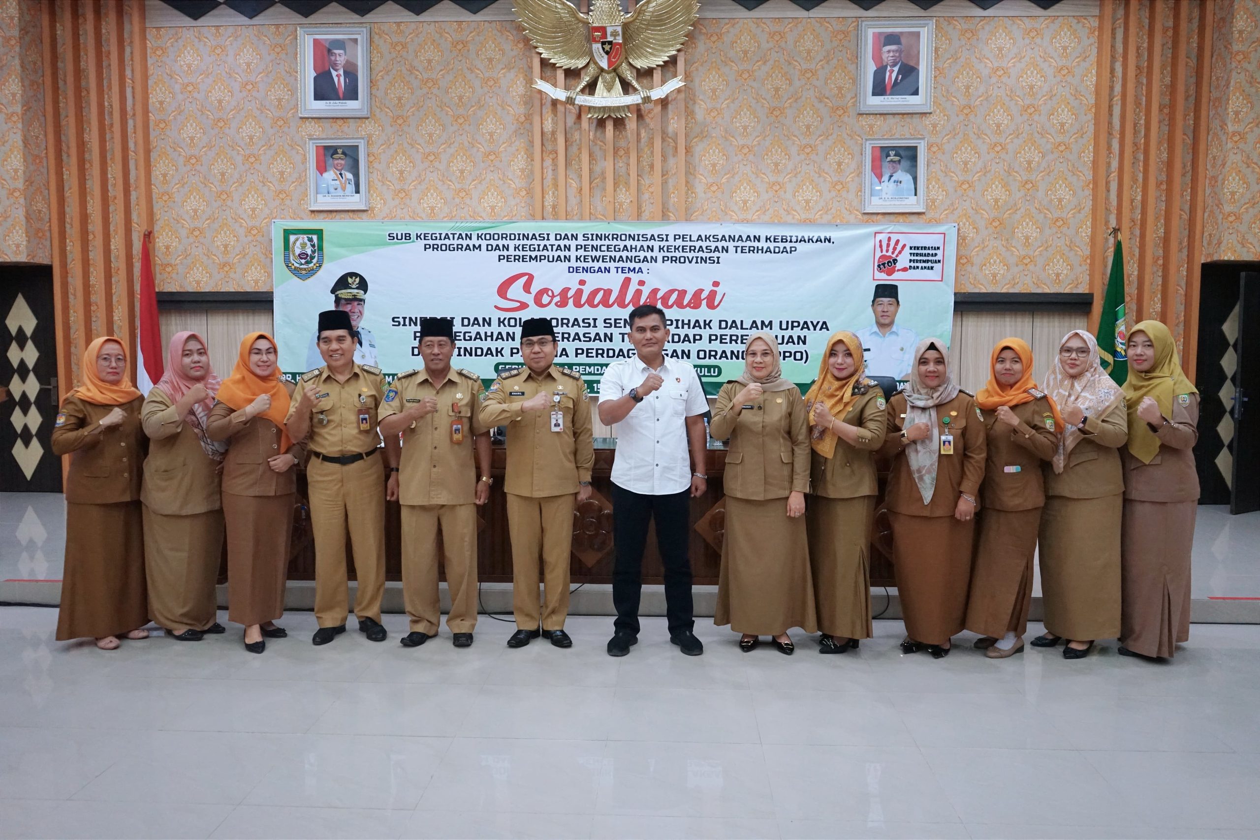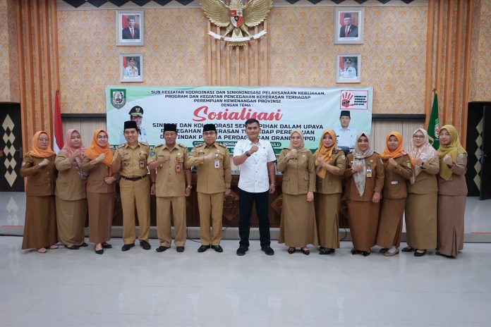 Sub kegiatan koordinasi dan sinkronisasi pelaksanaan kebijakan program serta kegiatan pencegahan kekerasan terhadap perempuan di lingkungan kewenangan provinsi mengusung tema Sosialisasi Sinergi dalam Upaya Pencegahan Kekerasan Terhadap Perempuan dan Tindak Pidana Perdagangan Orang (TPPO).