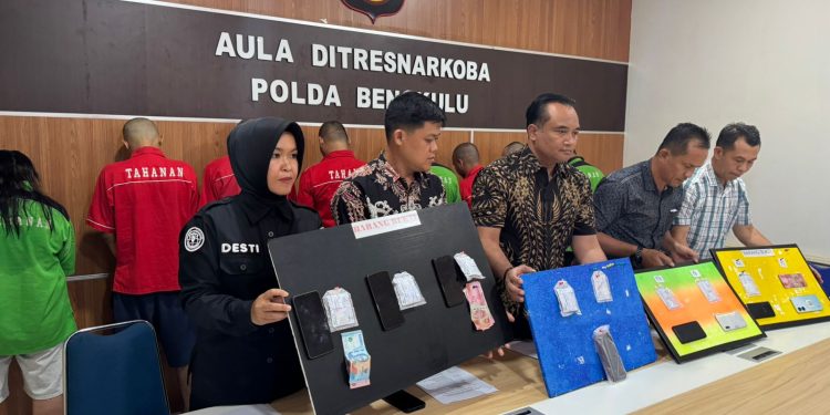 RAKYAT DAERAH – Tempo sepekan Ditresnarkoba Polda Bengkulu berhasil mengamankan 8 orang tersangka atas kasus penyalahgunaan narkotika jenis sabu.