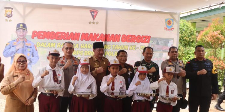 RAKYAT DAERAH – Dalam rangka menyambut HUT Brimob ke – 79 tahun 2024 dan mendukung program kerja pemerintah Prabowo – Gibran, hari ini (01/11/24) Polda Bengkulu melalui Sat Brimob menggelar pemberian makan siang bergizi di SD 89 Kota Bengkulu yang ada beralamat di Perumahan Korpri Kota Bengkulu.