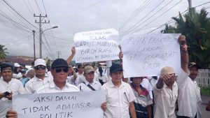 RAKYAT DAERAH – Ribuan Aparatur Sipil Negara (ASN), Perangkat Desa serta Tenaga Harian Lepas Terdaftar (THLT) di lingkungan Pemerintah Kabupaten (Pemkab) Lebong yang tergabung dalam Forum Penyelamat Birokrasi Kabupaten Lebong menggelar aksi unjuk rasa di Bank Bengkulu Cabang Muara Aman, Rabu (6/11) pagi sekitar pukul 09.00 WIB.