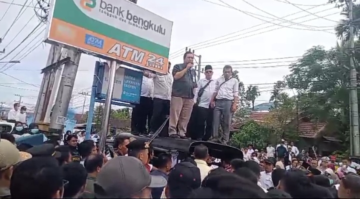 Di hadapan massa, ia mengaku sangat ingin merealisasikan apapun kepentingan yang sesuai dengan regulasi yang mengatur. Namun, ia menegaskan, bahwa Bank Bengkulu terikat dengan peraturan pengelolaan keuangan daerah.