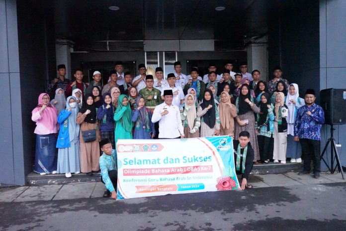 RAKYAT DAERAH – Plt Gubernur Bengkulu, Rosjonsyah, memimpin apel pagi yang dirangkaikan dengan pelepasan peserta Olimpiade Bahasa Arab (OBA) Ke-7 Tahun 2024 di Lapangan Apel Kantor Gubernur, Rabu (6/11) pagi.