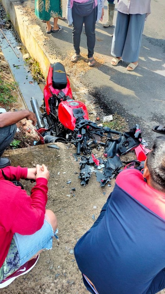 Akibatnya kendaraan sepeda motor Suzuki GSX 150 warna merah tanpa nopol hilang kendali kemudian masuk kedalam siring yang berada di kanan jalan, hingga dinyatakan meninggal dunia.