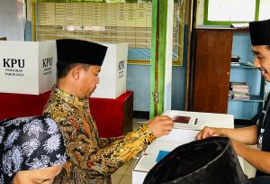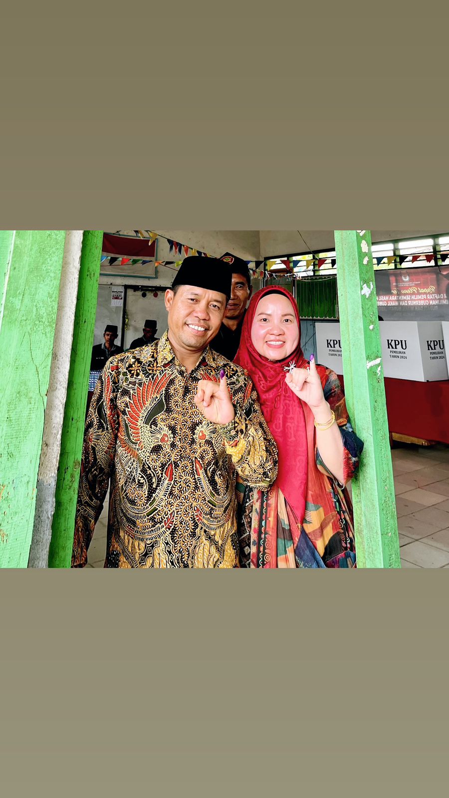 RAKYAT DAERAH – Bupati Lebong, Kopli Ansori bersama sang istri, Elvi Sukaesih melakukan pencoblosan di Tempat Pemungutan Suara (TPS) 01 di Desa Kota Baru, Kecamatan Uram Jaya, Kabupaten Lebong, Rabu (27/11).