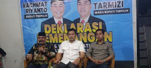 Dalam konprensi pers tim Pemenangan Keluarga yang digelar di kediaman Rachmat Riyanto – Tarmizi, Sekretaris tim pemenangan Paslon nomor urut 1, Adran Khalik mengatakan, bahwa kemenangan pasangan Rachmat Riyanto – Tarmizi berdasarkan data C1 yang masuk dari para saksi.