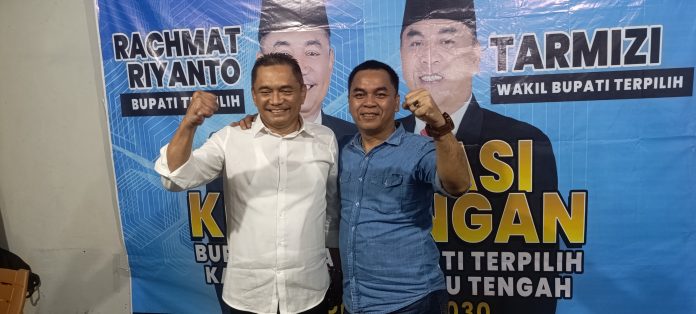 RAKYAT DAERAH – Pasangan Calon Bupati dan Wakil Bupati Bengkulu Tengah (Benteng) Rachmat Riyanto – Tarmizi berhasil meraih suara 33.374 suara atau 45,56 persen dari total Daftar Pemilih Tetap (DPT) kabupaten Benteng 88,424. Dengan torehan itu Tim pemenangan Rachmat Riyanto – Tarmizi menyatakan kemenangan sebagai Bupati dan Wakil Bupati Benteng 2024-2029.