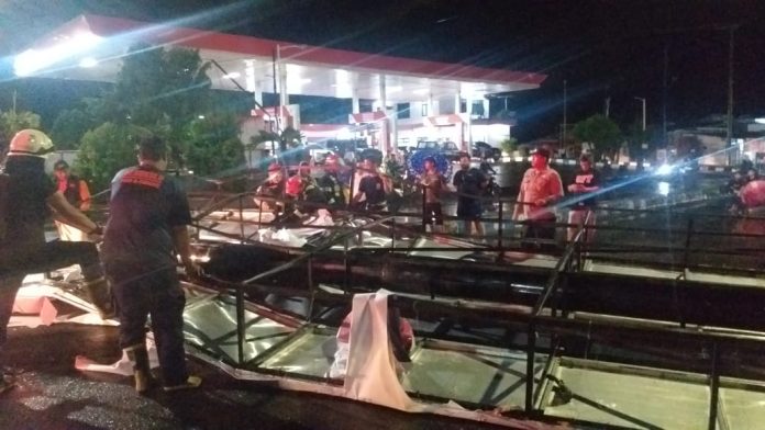 RAKYAT DAERAH – Curah hujan yang tinggi disertai angin kencang pada Senin sore, (2/12) mengakibatkan satu unit kerangk baliho yang terletak tepat di simpang empat Lampu Merah KM 8 Jalan Mahakam Kelurahan Jalan Gedang Kecematan Gading Cempaka Kota Bengkulu roboh. Akibatnya, satu unit mobil dan pengendara sepeda motor tertimpa, beruntung mobil hanya mengalami ringsek dan korban hanya mengalami luka ringan. Polisi yang dibantu oleh masyarakat langsung melakukan evakuasi baliho tersebut. Dengan insiden itu polisi masih melakukan penyelidikan terkait robohnya baliho iklan yang berukuran cukup besar itu.[026]