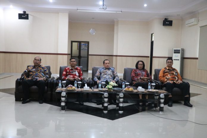 RAKYAT DAERAH– Kepala Kantor Wilayah Santosa beserta Pimpinan Tinggi Pratama Kantor Wilayah Kementerian Hukum Bengkulu, mengikuti Pengarahan Sekretaris Jenderal Kementerian Hukum RI Nico Afinta secara virtual di Aula Soekarno Kanwil Kemenkum Bengkulu, Kamis (5/12).