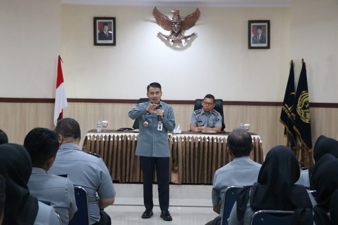 RAKYAT DAERAH – Kepala Kantor Wilayah Kementerian Hukum (Kanwil Kemenkum) Bengkulu yang baru, Sasmita memberikan arahan dan penguatan kepada para pejabat struktural, Jabatan Fungsional Tertentu (JFT) dan Jabatan Fungsional Umum (JFU) di lingkungan Kanwil Kemenkum Bengkulu. Kegiatan ini berlangsung di Aula Soekarno dan menjadi agenda perdana Sasmita sejak bertugas di Bumi Rafflesia.