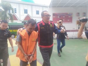 Teks Foto : Tersangka RM Bendahara Korem 041 Gamas Bengkulu saat digelandang ke Rutan Malabero Bengkulu Kemarin (Rabu, 1/1)./dok