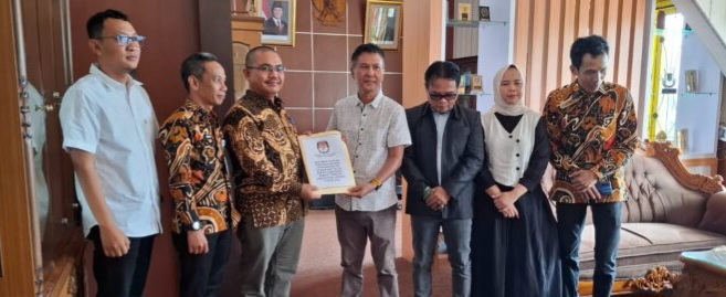 Sementara dari pihak Komisi Pemilihan Umum (KPU) hadir langsung ikut menyerahkan surat usulan pengesahan dan Pengangkatan Pasangan Bupati dan Wakil Bupati terpilih kabupaten Lebong hasil Pilkada 2024 Ketua Komisioner Komisi pemilihan Umum kabupaten Lebong Yoki Setiawan.,S.Sos.,bersama seluruh Komisioner dan sekretaris KPU kabupaten Lebong .