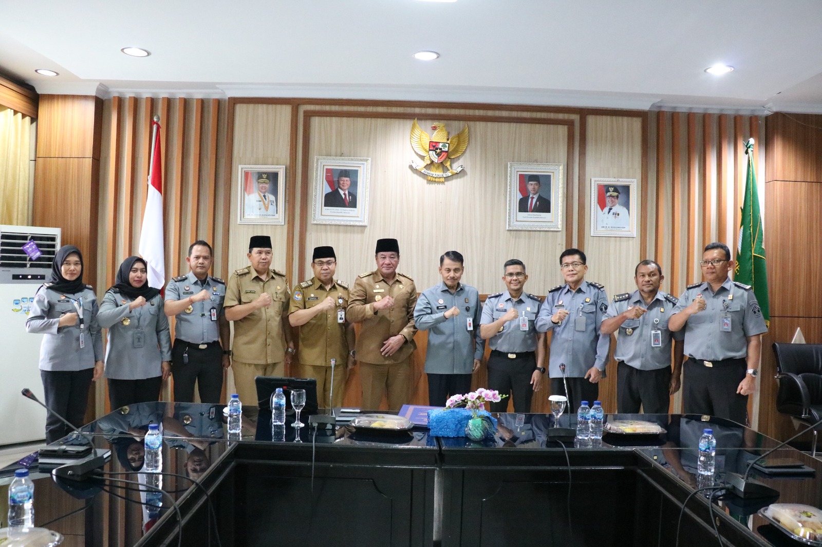 RAKYAT DAERAH – Kepala Kantor Wilayah Kementerian Hukum (Kanwil Kemenkum) Bengkulu, Sasmita bersama Kepala Divisi Pelayanan Hukum, Machyudhie, Kepala Divisi Peraturan Perundang-undangan dan Pembinaan Hukum, Tongam Renikson Silaban beserta para pejabat Struktural Kanwil Kemenkumham Bengkulu mengadakan audiensi dengan Plt. Gubernur Bengkulu Rosjonsyah di Ruang Rapat Rafflesia Kantor Gubernur Bengkulu, Senin (13/1).