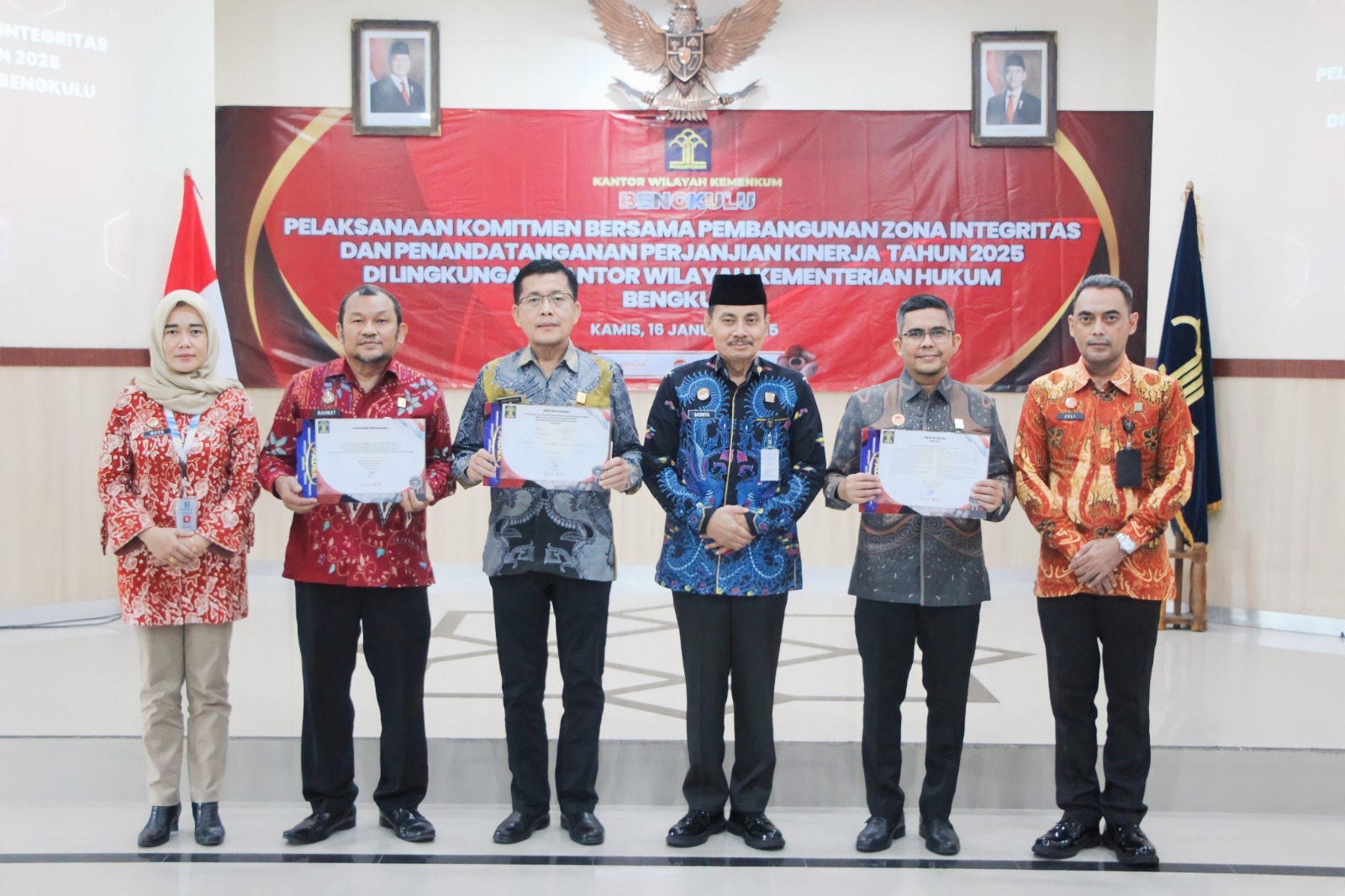 RAKYAT DAERAH – Kantor Wilayah (Kanwil ) Kementerian Hukum (Kemenkum) Bengkulu melaksanakan kegiatan Pencanangan Komitmen Bersama Pembangunan Zona Integritas serta Penandatanganan Perjanjian Kinerja Tahun 2025, Kamis (16/1).