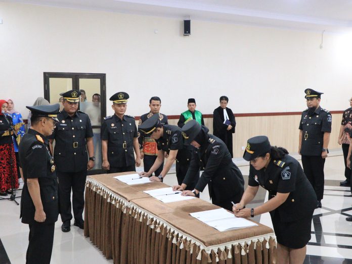 RAKYAT DAERAH – Kepala Kantor Wilayah (Kakanwil ) Kementerian Hukum (Kemenkum) Bengkulu Sasmita, melantik enam Pejabat Fungsional Tertentu (JFT) di lingkungan Kanwil Kementerian Hukum Bengkulu pagi ini di Aula Soekarno, Jum,at (17 /1).
