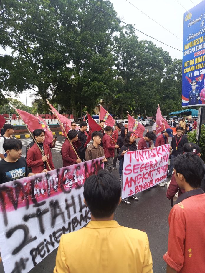 RAKYAT DAERAH – Mahasiswa Bengkulu yang tergabung dalam Angkatan Muda Muhammadiyah (AMM) menggelar aksi demonstrasi di Mapolresta Bengkulu pada Selasa, (4/2). Aksi yang berlangsung damai itu menuntut pengungkapan kasus penembakan Rahiman Dani yang terjadi 2 tahun lalu.