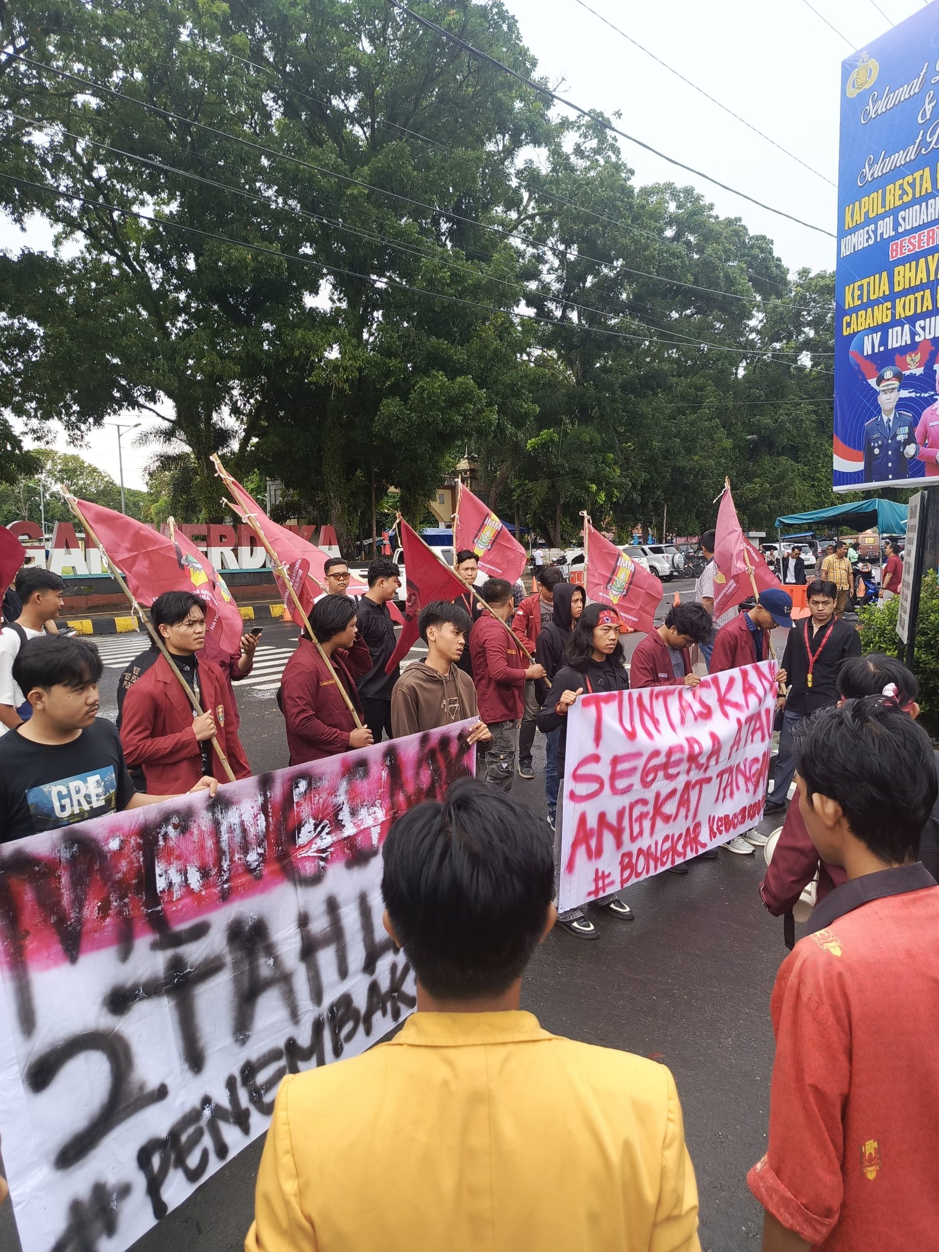 Selain itu, mahasiswa juga mendesak Preisden Prabowo segera mencopot Kapolri Listyo Sigit Prabowo sebagai pihak yang paling bertanggungjawab. Kapolri disebut gagal memperbaiki internal kepolisian sehingga tidak mampu mengungkap kasus penembakan Rahiman Dani.