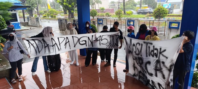 RAKYAT DAERAH – Kasus dugaan penipu Praktek kerja Industri yang digelar Fakultas Hukum Universitas Hazairin (Unihaz) Kota Bengkulu Tengah ditangani oleh Polresta Bengkulu. Dimana Rabu pagi (19/2) sejumlah mahasiswa yang menjadi korban menggelar aksi demontrasi di depan gedung Rektorat Unihaz.