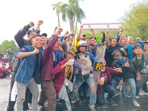 RAKYAT DAERAH – Ribuan mahasiswa Yang tergabung dari BEM Universitas Se Provinsi Bengkulu, Organisasi mahasiswa, organisasi kepemudaan se provinsi Bengkulu Senin siang (23/2) menggelar aksi Indonesia gelap di depan gedung DPRD provinsi Bengkulu. Aksi demontrasi yang sempat diwarnai kericuhan itu, ribuan mahasiswa berhasil masuk ke pelataran gedung DPRD provinsi Bengkulu dan menduduki gedung wakil rakyat walaupun akhirnya masa berhasil dipukul mundur oleh aparat kepolisian.