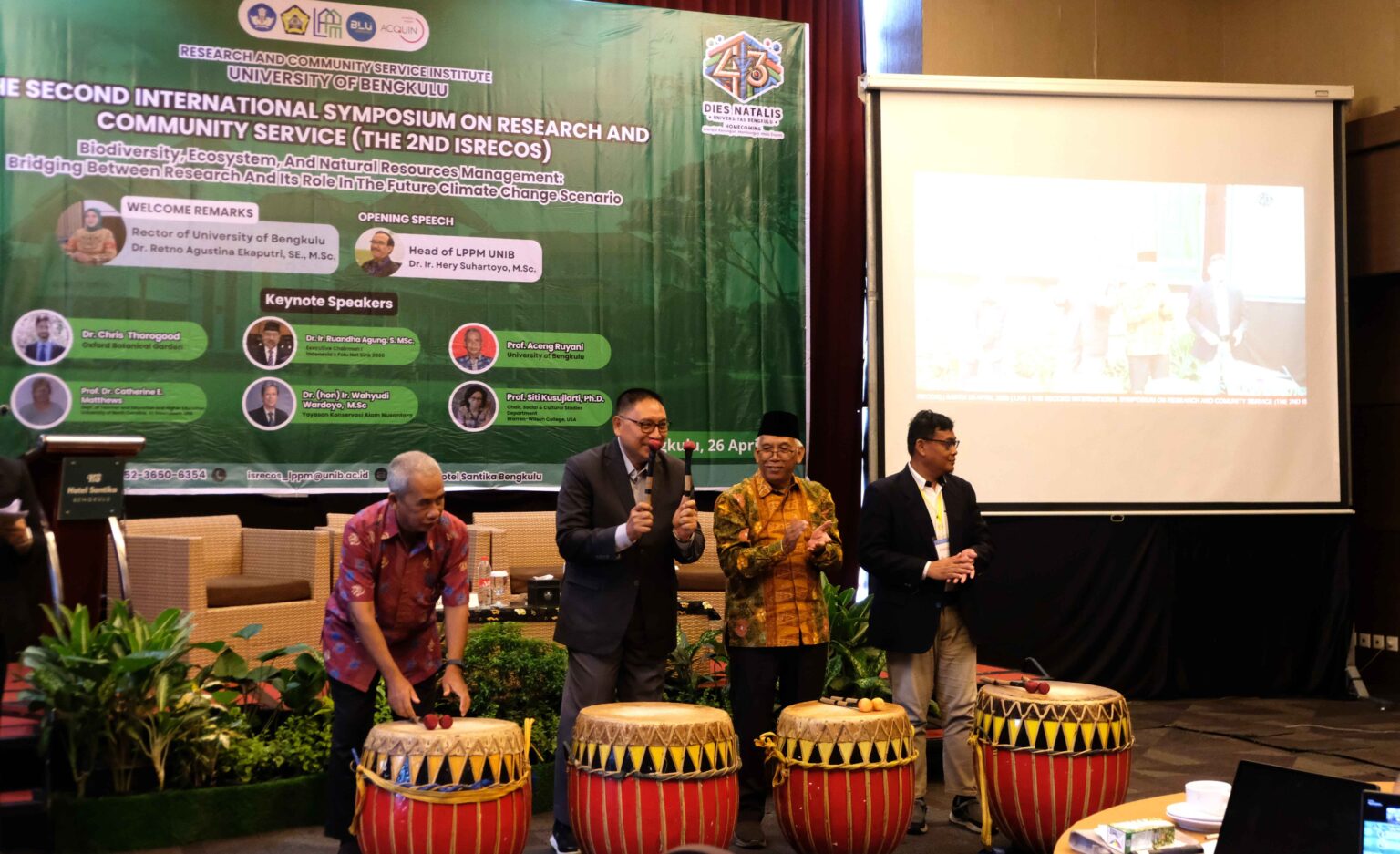 RAKYAT DAERAH – Dalam rangka memeriahkan Dies Natalis ke-43 Universitas Bengkulu, Lembaga Penelitian dan Pengabdian kepada Masyarakat Universitas Bengkulu (LPPM Unib) sukses menggelar International Symposium on Biodiversity, Ecosystem, and Natural Resources Management (ISRECOS 2025) pada Sabtu, (26/4), bertempat di Hotel Santika, Kota Bengkulu. Simposium ini mengusung tema besar “Bridging Between Research and Its Role in the Future Climate Change Scenario.”
