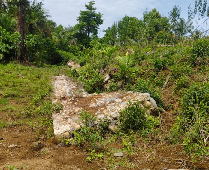 RAKYAT DAERAH – Proyek Pembangunan lapis tebing di Desa Lubuk Bangko Kecamatan Selagan Raya Kabupaten Mukomuko ambuk. Pembangunan lapis tebing yang diperkirakan umurnya belum satu tahun itu untuk menahan tebing lapangan Sepak bola desa.