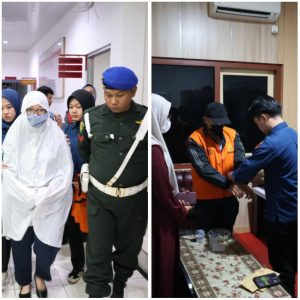 Tersangka LFS mengenakan mukena dan RM saat diperiksa saat menuju mobil tahanan secara terpisah/Rakyatdaerah