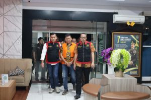 Pantauan awak media, para tersangka langsung mengenakan rompi tahanan dan digiring menuju mobil tahanan.