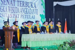 Ketiga, jadilah agen perubahan. Setiap dari kalian adalah pemimpin di bidangnya masing-masing. Kehadiran kalian di tengah masyarakat harus membawa manfaat. Jadilah pribadi yang mampu memberi solusi, bukan menambah masalah. Tunjukkan bahwa lulusan Universitas Pat Petulai mampu bersaing, berdaya saing tinggi, sekaligus memiliki kepedulian sosial.