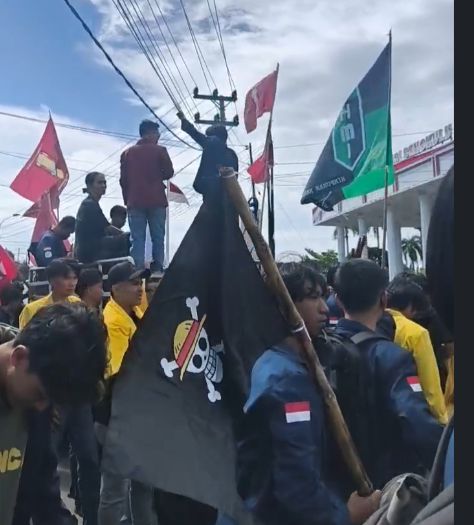 Demo Mahasiswa Bengkulu Diwarnai Pengibaran Bendera One Piece