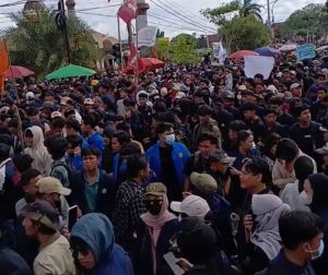 Tampak kerumunan Massa di Depan Gedung DPRD Bengkulu
