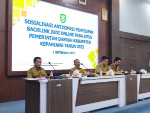 RAKYAT DAERAH – Dalam upaya meningkatkan pemahaman Aparatur Sipil Negara (ASN) di lingkungan Pemerintah Kabupaten (Pemkab) Kepahiang terkait risiko ancaman judi online pada situs pemerintah, Dinas Komunikasi dan Informatika (Diskominfo) Kabupaten Kepahiang menggelar Sosialisasi Antisipasi Backlink Judi Online, Senin (1/9/2025) di Aula Command Center Pemda Kepahiang.