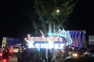“Jembatan ini sebelumnya belum punya nama. Maka kita kasih nama jembatan kembar. Kita percantik, jembatan dan tamannya kita kasih lampu. Dan nanti saya minta kadis PUPR jangan lupa jembatan ini dikasih jaring besi, mungkin di tahun 2026 nanti perlu diberi jaring besi di sisi kiri dan kanan jembatan agar tidak ada lagi pengendara yang melempar sampah ke dalam sungai,” kata Dedy.