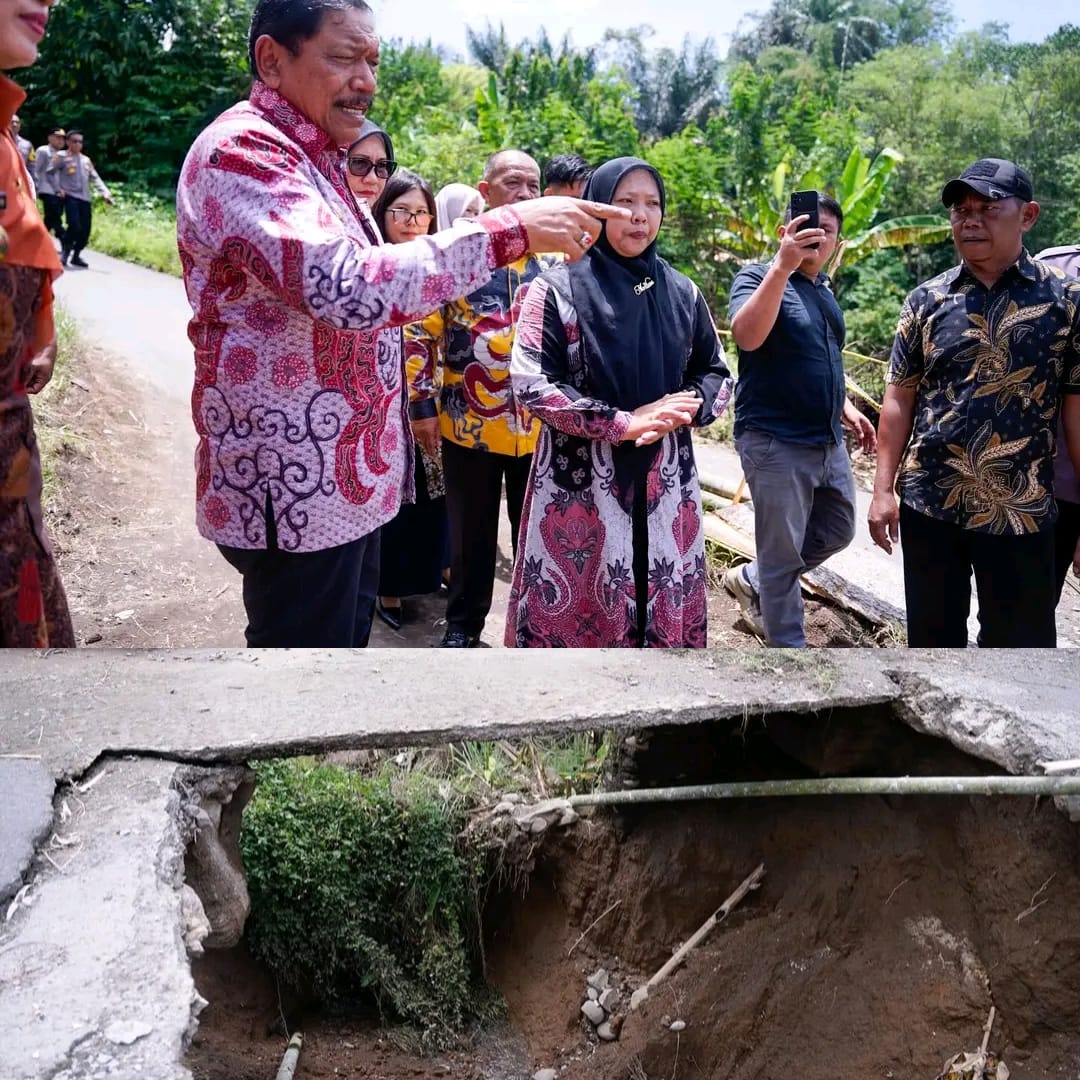 RAKYAT DAERAH – Wakil Gubernur Bengkulu, Mian, bersama jajaran Pemerintah Kabupaten Rejang Lebong meninjau jembatan amblas di Desa Air Merah, Kecamatan Curup Tengah, Kamis (2/4) siang.