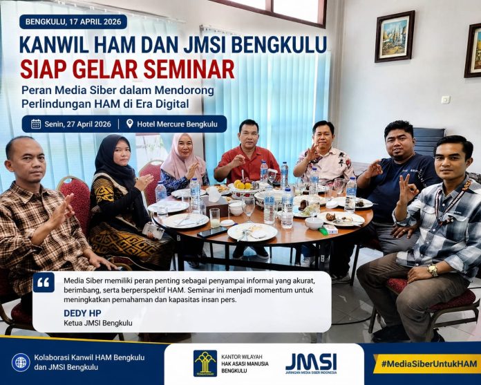 RAKYAT DAERAH – Kantor Wilayah (Kanwil) Hak Asasi Manusia (HAM) berkolaborasi dengan Jaringan Media Siber Indonesia (JMSI) Bengkulu akan menggelar seminar bertema “Peran Media Siber dalam Mendorong Perlindungan HAM di Era Digital”.