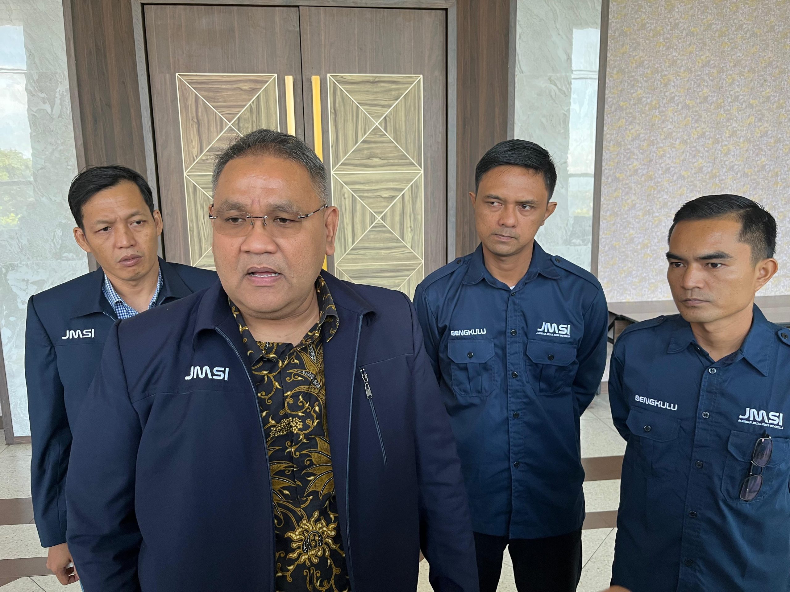 Ketua umum JMSI, Teguh Santosa saat diwawancarai awak Media usai melantik pengurus JMSI Provinsi Bengkulu periode 2026-2030.dok_rd