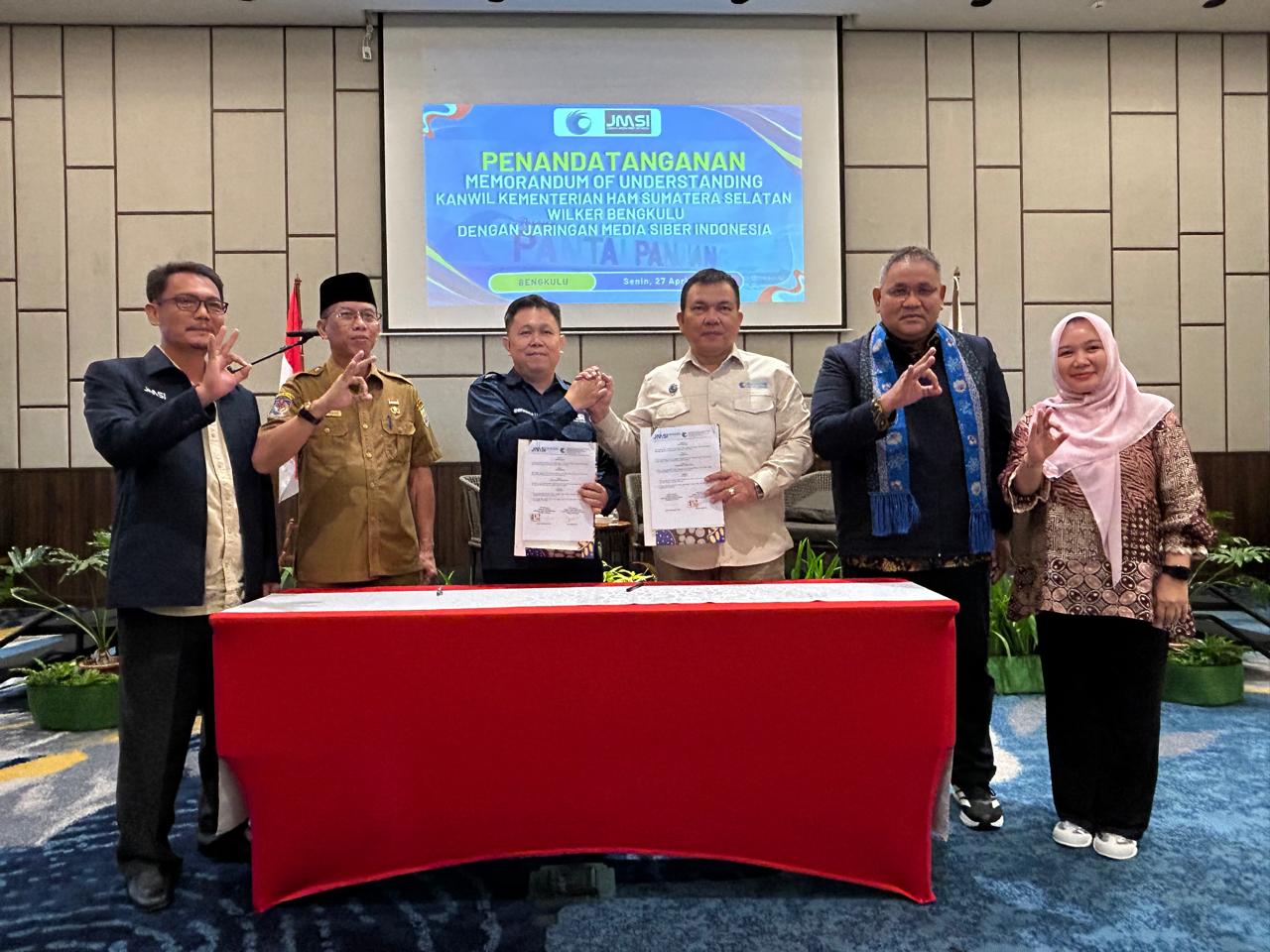 Penandatanganan antara Kanwil HAM dengan Pengda JMSI Provinsi Bengkulu.dok_red